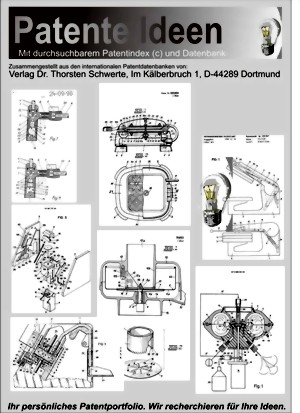 Normalerweise können es sich nur Firmen leisten umfangreiche Patentrecherchen, wie die hier angebotene, erstellen zu lassen. Die Zusammenstellung solcher Sammlungen in gut archivierbarem Format ist aufwendig und setzt kostenpflichtige Datenbankprogramme voraus. Manche amerikanische Firmen berechnen für die Recherche bis zu 3,50 Euro pro Patent! Unser Verlag bietet Ihnen hier diese Leistungen zu einem unschlagbar niedrigen Preis an. Sollte Ihnen ein Sie interessierendes Thema fehlen, so fordern Sie uns und wir erstellen Ihnen ein Angebot, zu dem Sie nicht "Nein" sagen können (allerdings nur für private und nicht kommerzielle Zwecke, für Firmenanfragen existieren andere Bedingungen (Anfragen erwünscht)).