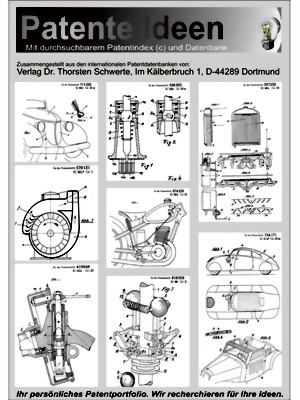 Normalerweise können es sich nur Firmen leisten umfangreiche Patentrecherchen, wie die hier angebotene, erstellen zu lassen. Die Zusammenstellung solcher Sammlungen in gut archivierbarem Format ist aufwendig und setzt kostenpflichtige Datenbankprogramme voraus. Manche amerikanische Firmen berechnen für die Recherche bis zu 3,50 € pro Patent! Unser Verlag bietet Ihnen hier diese Leistungen zu einem unschlagbar niedrigen Preis an. Sollte Ihnen ein Sie interessierendes Thema fehlen, so fordern Sie uns und wir erstellen Ihnen ein Angebot, zu dem Sie nicht "Nein" sagen können (allerdings nur für private und nicht kommerzielle Zwecke, für Firmenanfragen existieren andere Bedingungen (Anfragen erwünscht)).