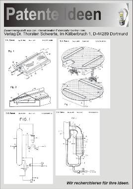 Normalerweise können es sich nur Firmen leisten umfangreiche Patentrecherchen, wie die hier angebotene, erstellen zu lassen. Die Zusammenstellung solcher Sammlungen in gut archivierbarem Format ist aufwendig und setzt kostenpflichtige Datenbankprogramme voraus. #Manche amerikanische Firmen berechnen für die Recherche bis zu 3,50 Dollar pro Patent! Unser Verlag bietet Ihnen hier diese Leistungen zu einem unschlagbar niedrigen Preis an. Sollte Ihnen ein Sie interessierendes Thema fehlen, so fordern Sie uns und wir erstellen Ihnen ein Angebot, zu dem Sie nicht "Nein" sagen können (allerdings nur für private und nicht kommerzielle Zwecke, für Firmenanfragen existieren andere Bedingungen (Anfragen erwünscht)).